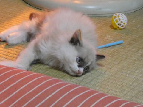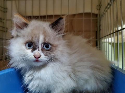 ふわふわモコモコの柔らかい毛をしています。 良く食べて元気。ネコじゃらしや丸い玉を追いかけて遊んでいます。