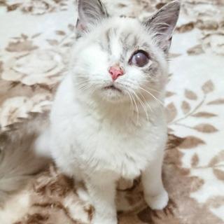 長毛ふわふわの白いっぽいシャム系です。