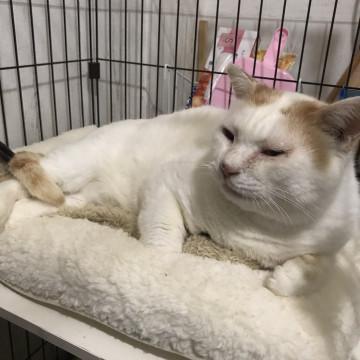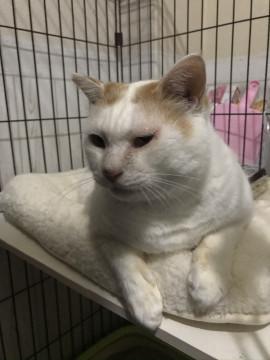 でっかちは、河川敷に居た子です。台風19号の接近により、避難させました。最初は元の場所に戻す予定でしたが、川は冠水、今もヘドロで猫が住む場所がありません。保護して、こんなにゴロゴロと喉を鳴らす事から、新しい飼い主さんの元で、抱っこされながら幸せに暮らしてもらいたいと思い、保護しました。我が家では、他の猫が虐めるので、日当たりの良くない部屋で保護しております。早く日向ぼっこできる環境で過ごせたらと思っております。
