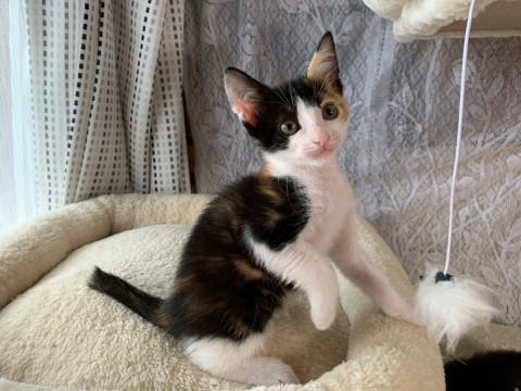美しい日本三毛猫です。授乳で育てたので人馴れ抜群です。子猫らしく元気に兄妹で過ごしています。一緒に寝たりお膝の取り合いです。成猫とも仲良く過ごしています。