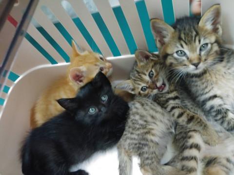 台風が来た日にびしょ濡れの4兄弟妹がいたそうで、親猫は台風のために逃げたのか現れませんでした。