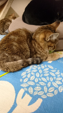 母ネコは元の場所に戻しましたが、子猫は戻さず家猫修行中です♪
