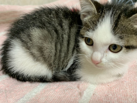 小柄な女の子です。子猫・成猫とともに仲良く生活しています。元気に遊んで寝て食べています。