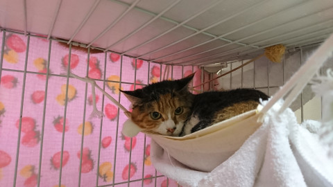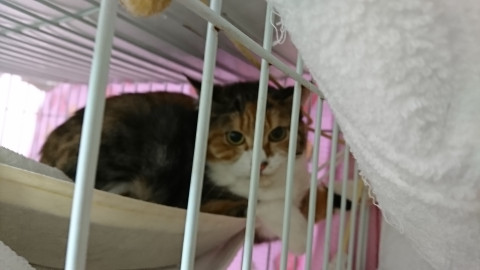 現在募集中のもう1匹の三毛猫ちゃんと姉妹です。