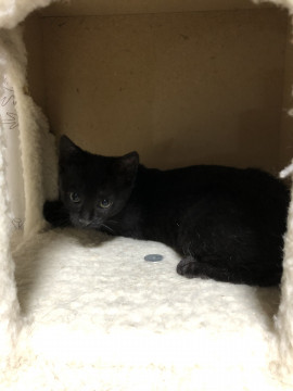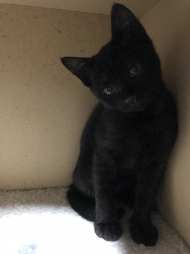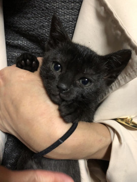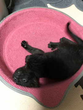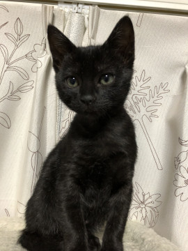 傷が治るまでは大人しい感じでしたが姉妹とよく遊び元気に育ちました。好奇心旺盛のやんちゃっ娘。一人で遊ぶのも遊んでもらうのも大好き。肩乗りニャンコ。
