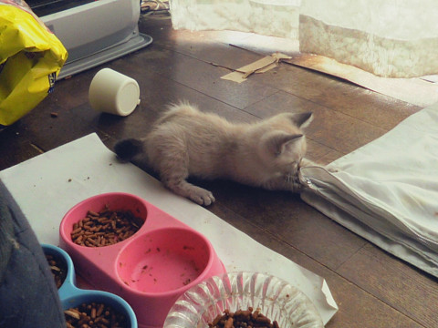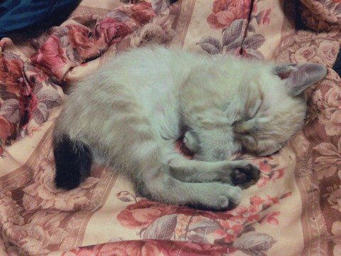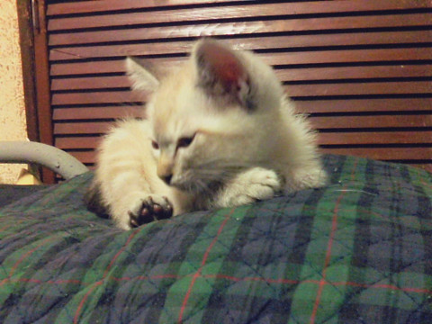 シャム系の女の子で少しおとなしいですが膝に乗ってきます。