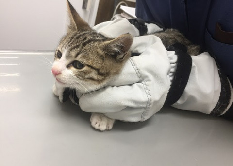 保護したばかりで緊張していますがまだ800グラム~1キロの小さな子猫ですので
