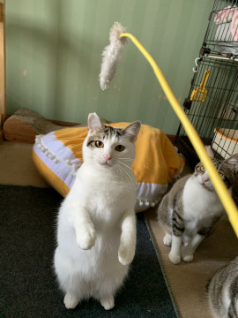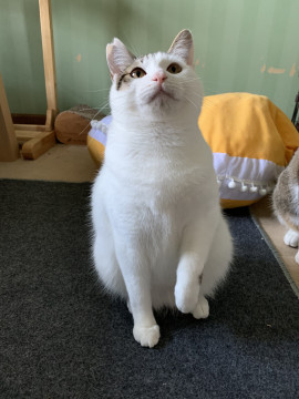 べったりの甘えん坊ではなく、程よい距離で一緒に居てくれます。とてもよく食べ、健康体です。人に依存していないので、お留守番の長めのお宅に向いています。お留守番が長い場合は先住猫ちゃんが居たら寂しくないかと思います。手のかからないとても良い子です。