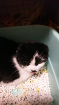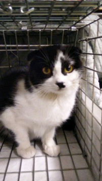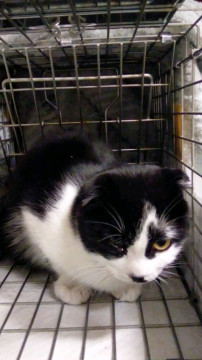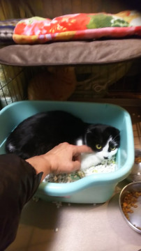 雪乃ちゃんは、黒白のスコティッシュ風です。物怖じしないタイプで撫でられますが、抱っこは余り好きじゃないです。