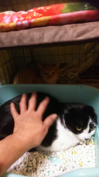 直ぐ先で、ひかれて命を落とした子が居た為、保護をしました。まだ、完全に人馴れをしていませんが、少しすれば可愛く甘える子になると思います。