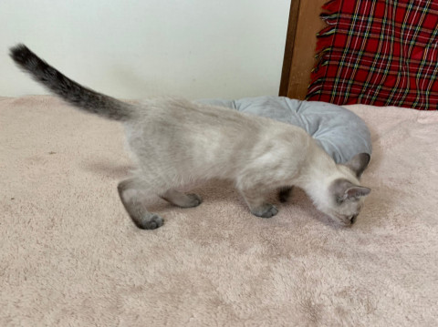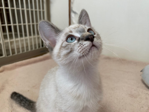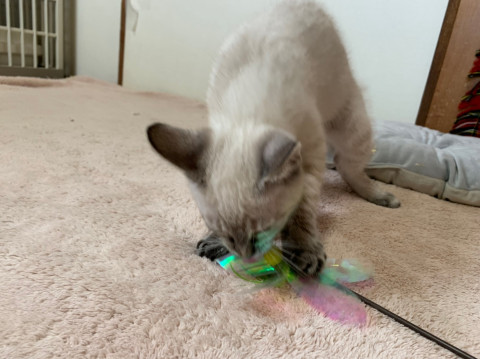 人間が大好きで、ついて歩きます。おもちゃでもよく遊び、寝るときも布団に入ってきます。