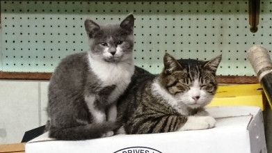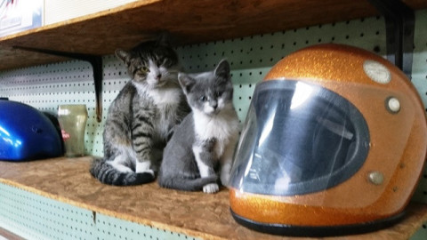 寒さを凌ぐ場所を探して2匹の子猫がお店の中に入り込んできました。まだ小さく、寒い外に放り出すのは命にもかかわるので、里親さまを探す運びとなりました。