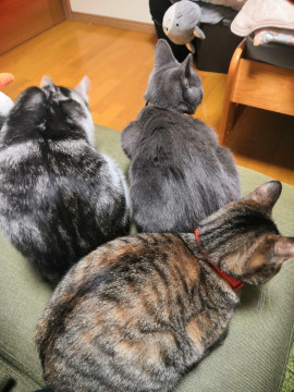当方で譲渡した猫を里親様の都合により引き取ることになり、既に別の場所より譲渡された2匹の行き場所がないので3匹一緒に引き取りました。