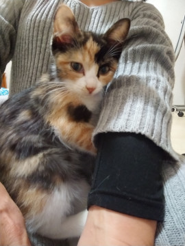 お店のスタッフに保護はされたものの、寒い倉庫に段ボールに入れられているだけで、見るに見兼ねての引き取りです。