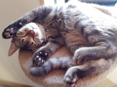 保護当初は威嚇もありましたが、今ではお腹を見せてゴロゴロいうまでになりました!