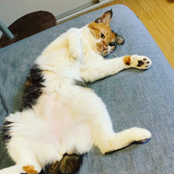 とっても甘えん坊です。怖がりなところもあり、新しい環境になると最初の方は緊張が強く威嚇することがありますが、手も口も出ません。人間の身体に自分の身体のどこかをくっつけて寛いだり眠ったりが好きで、当然のように毎日一緒に寝てくれます。抱っこはあまり好きではないようですが、基本身体のどこを触っても嫌がりません。撫でられたりブラッシングも大好きで、ゴロゴロいいながらうっとりした表情でこちらを見つめてくれるたまらなく可愛いなっちゃんです。