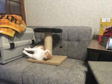 5月の末に生まれて、可愛がってはもらっていた様ですが、家猫にしてやりたいと思い里親さんを探すことにしました。