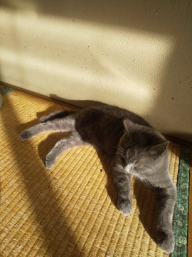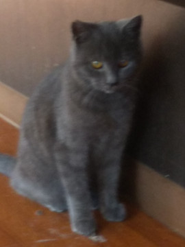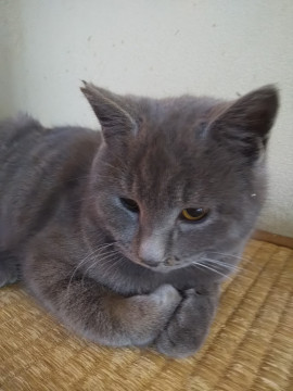 ロシアンブルーを思わせるグレーベースにうっすら縞模様がの入った、とてもきれいな毛色をしています。