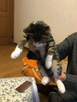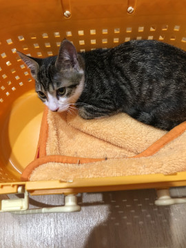 既に2匹の猫ちゃんいるのと、乳呑み子の為飼育依頼され引き取りました。