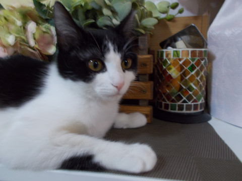 白黒マレちゃんは、とても甘え上手な可愛い子です。他の猫ちゃん、ワンちゃんにも平気です。