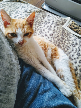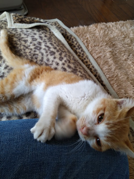 保護して4日です。少し痩せていますが食欲旺盛でよく遊びとても甘えん坊です。