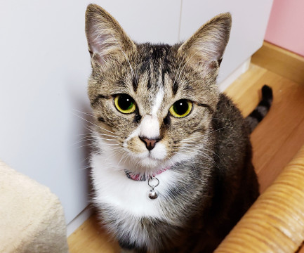 1歳ぐらいの、かわいいキジシロの女の子です。