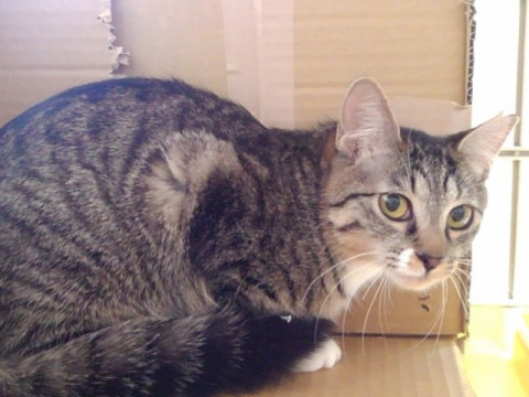 元気でまだ警戒心もありますが保護して数か月、大分室内の環境や人にも慣れてはきており、ごはんのときは催促するようにもなりました。