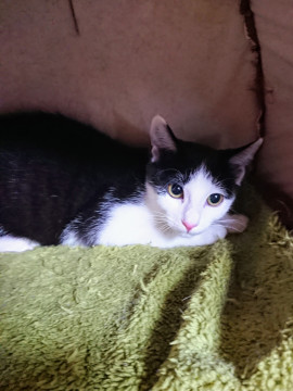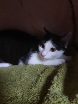 きれいなハチワレの黒白猫、ぶどうちゃんです。とっても美人さんに成長しました!