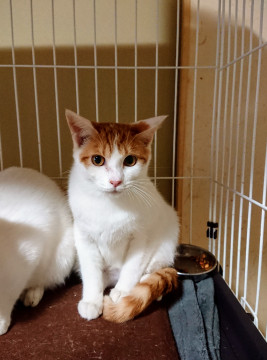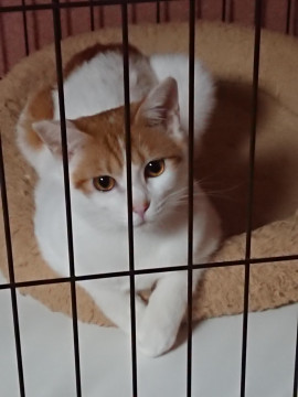 人にはとてもフレンドリーですが、他の猫には威圧的な態度を示すことがありますので、里親さまは1匹での飼育をお願いできる方、もしくはおれんじのために1部屋準備してくださる方に限らせていただきます。