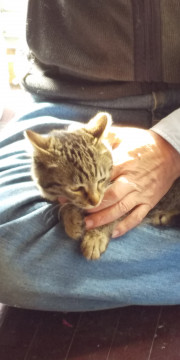 その母猫が一匹仔猫を産み、一緒に生活していたようです。お近くのお優しい方がお家に仔猫だけを保護してくださいました。