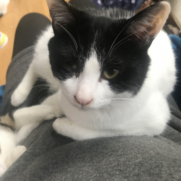 目を合わせるとにゃーと鳴いて見つめてくるような愛らしい子。
