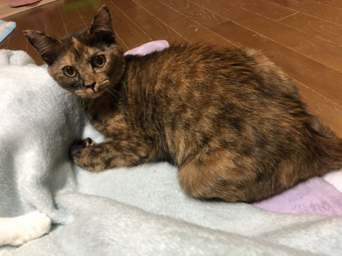 動物病院にて里親募集をしていましたが家庭猫としての訓練が出来ていないため生後3ヶ月程度の時に我が家で保護致しました。