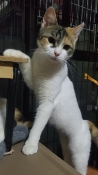 保護からまだ1か月程度で保護猫部屋でなくこちらのLDでゲージの中にいます。