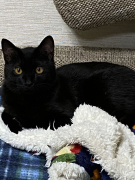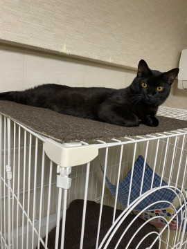 優しい男性に保護された黒ちゃんです。猫は風邪をひいていたので病院に入院。そのまま病院でずっとお世話にされていました。元気になってとても健康になり里親さんを探していたのですが先生にかわり、私が里親さんを探すことにしました。