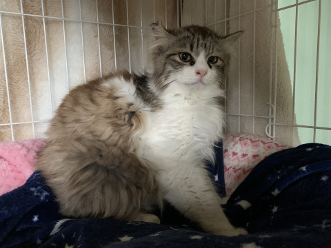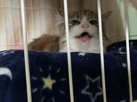 長毛さんはお外では行きづらいため、保護して里親探しをする事にしました。
