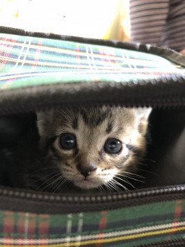発見したときに母猫のおっぱいをたくさん飲んで、離乳の時期だったので保護しました。