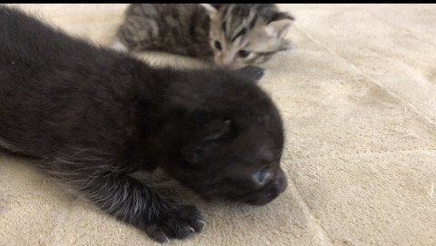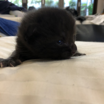黒猫ちゃん、三兄弟の2番目。しっぽもまっすぐで美猫です。