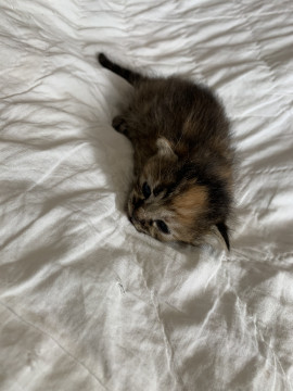 4月11日頃、訪問先の庭先で産まれておりました。皆さま迷惑されており保護いたしました。
