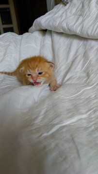 4月11日頃、訪問先の庭先で産まれておりました。皆さま迷惑されており保護いたしました。