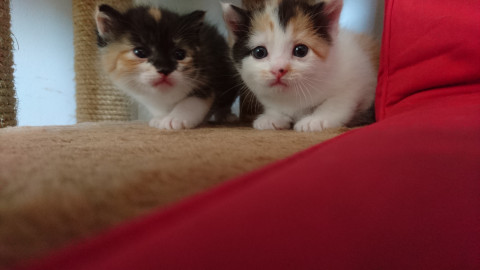 茶とらのひーちゃん、三毛猫(白多め)のみーちゃんと3匹募集中です。