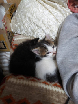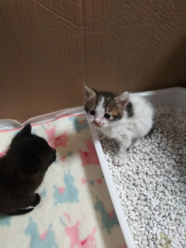 お友達の家の隣の空き家で野良ちゃんが子育てしていたので、親子で保護しました。