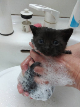 現在、保護主さん宅にて離乳食を食べスクスク成長中です。