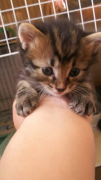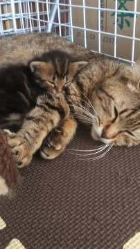 野良さんが家の軒下で赤ちゃんを産んだようです!とヘルプの連絡が入り、母猫共に保護しました。子育て支援をし、ママ猫のおっぱいですくすく育っています。4兄弟ですが、一番の甘えんぼです。ママも美猫ですが、優しい顔立ちでとてもかわいいです。