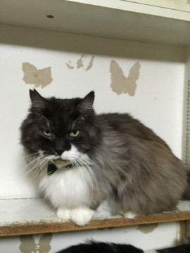 お顔に似合わない可愛らしい声で、にゃ〜とお返事します。