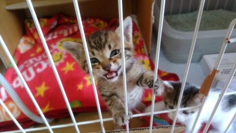 母ネコはTNRし、まだ小さいこの子達は里親様を募集することになりました。