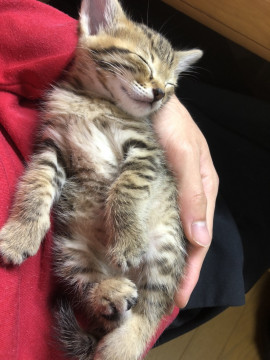 保護してすぐの頃は少し威嚇していましたが、すぐに慣れ、甘えてくるようになりました。