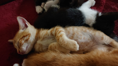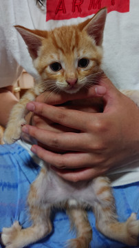 知り合いのお友達の家で野良猫が赤ちゃんを産み、その家では飼うことが出来ず、保健所に連れていくと聞いて、私が預かることにしました。今は、母猫とこの子の兄妹五匹と一緒に暮らしています。