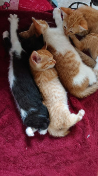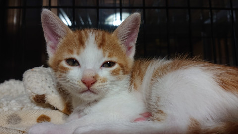 知り合いのお友達の家で野良猫が赤ちゃんを産み、その家では飼うことが出来ず、保健所に連れていくと聞いて、私が預かることにしました。今は、母猫とこの子の兄妹五匹と一緒に暮らしています。