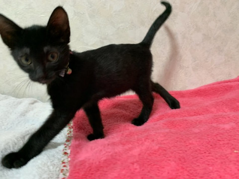 生後数日から授乳で育てた兄妹たちです。人馴れ抜群の甘えっ子です。美しい黒猫です。食欲旺盛で成猫・子猫ともに仲良く過ごしています。