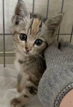 おめ目クリクリ器量良し♪たぶん女の子だと思います。まだ緊張しているからかもしれませんが、大人しいのではないかと思います。とにかく美猫ちゃんです♪